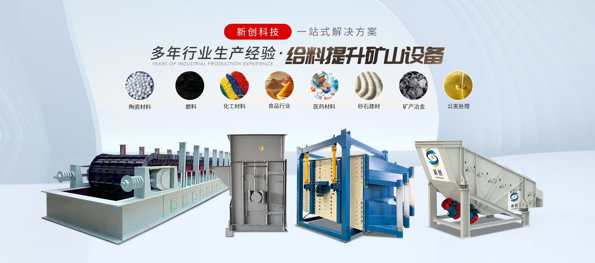 /about us邯鄲市峰峰礦區新創科技有限公司是振動設備、給料設備、振動篩分設備、輸送設備、提升設備、除塵設備等制造廠,玻璃原料輔機生產廠。